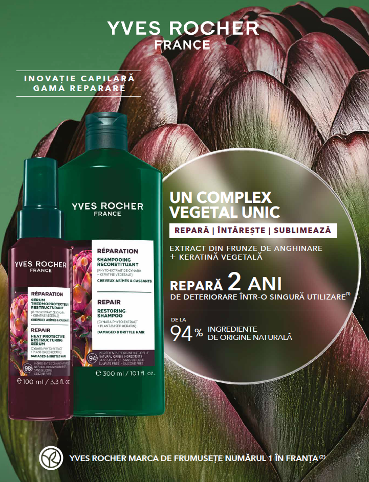 Dacă părul tău a trecut prin multe vopsiri repetate, coafări cu temperaturi ridicate sau pur și simplu stresul zilnic, atunci știi cât de dificil este să-i redai vitalitatea. Din fericire, Yves Rocher vine cu o soluție inspirată din natură: gama Repair cu extract de anghinare, special creată pentru regenerarea și fortifierea firului de păr.